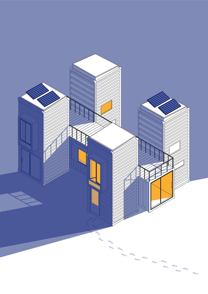 Concept, design & realisation of the first portotype for a room in a vertical container.