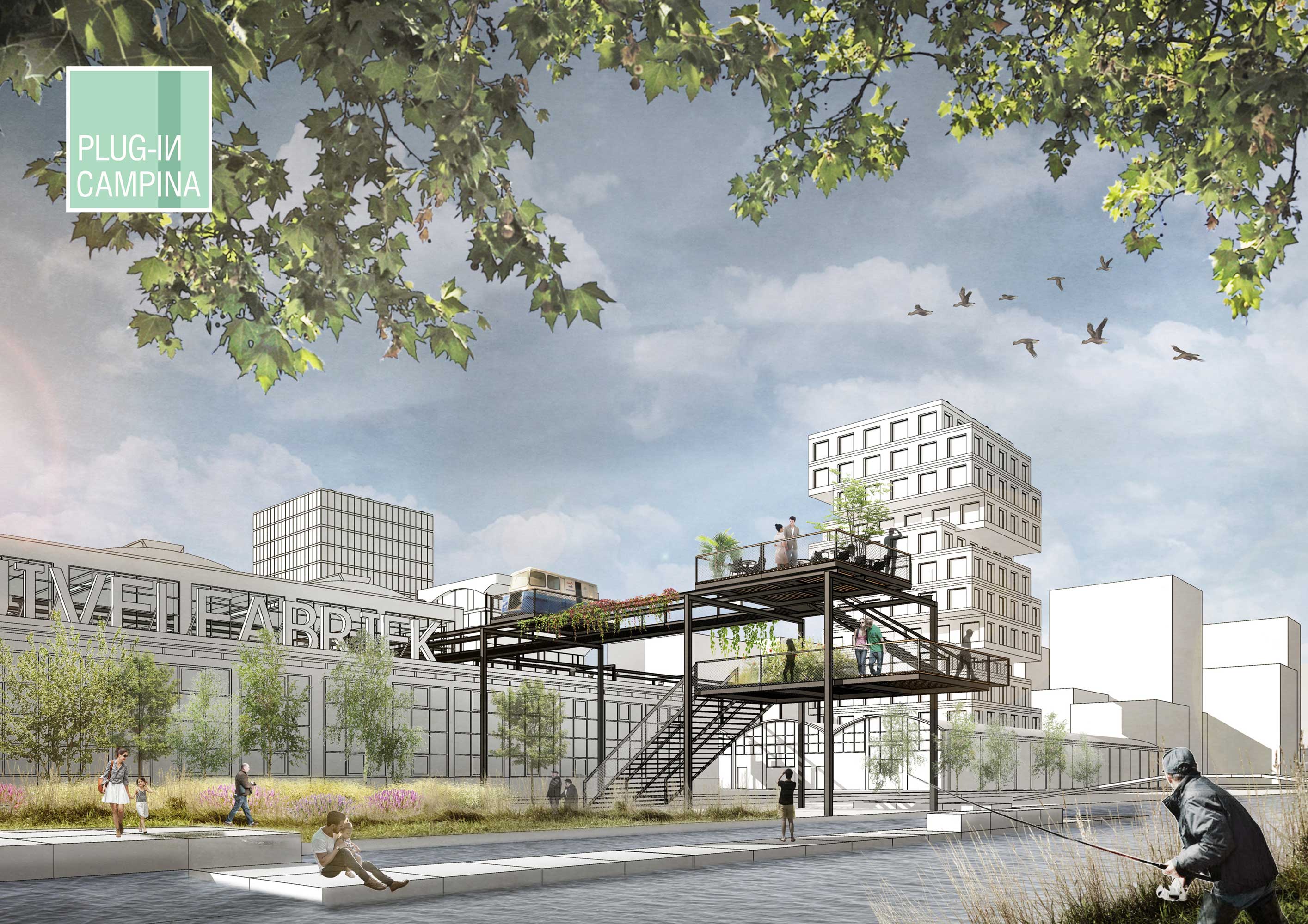 The Team proposed a concept for the future “Campinaterrein” at the canal in Eindhoven. The main goal of the competition is finding a solution to re-use the materials, that are currently redundant in the existing factory buildings and integrate them into the design of the new development, using the principles of circular economy.